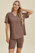 Basic Bae Full Size Ribbed V-Neck Short Sleeve Top and Shorts Set