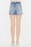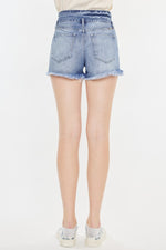 High Rise Frayed Hem Denim Shorts are a stylish and edgy addition to your summer wardrobe. The high rise design cinches the waist and creates a flattering silhouette. The frayed hem adds a touch of casual, laid-back charm to the shorts. These shorts are perfect for a day at the beach or a summer outing with friends. Pair them with a simple tee and sandals for a chic and effortless look. Overall, High Rise Frayed Hem Denim Shorts are a versatile piece that can be dressed up or down for any occasion.
