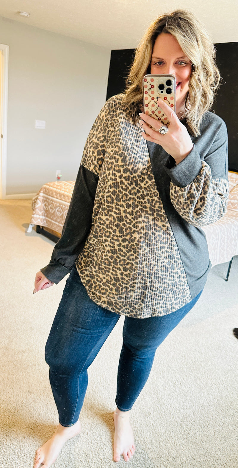 Designed with a relaxed fit and soft fleece material, this top is perfect for everyday wear. Alyssa is wearing a small and Rachel is wearing the 1X, showcasing the versatility of the sizing range. Crafted with high-quality, stretchy fabric, this pullover provides a comfortable and relaxed fit. Plus, with its USA manufacturing, you can trust the top's premium quality and style.