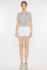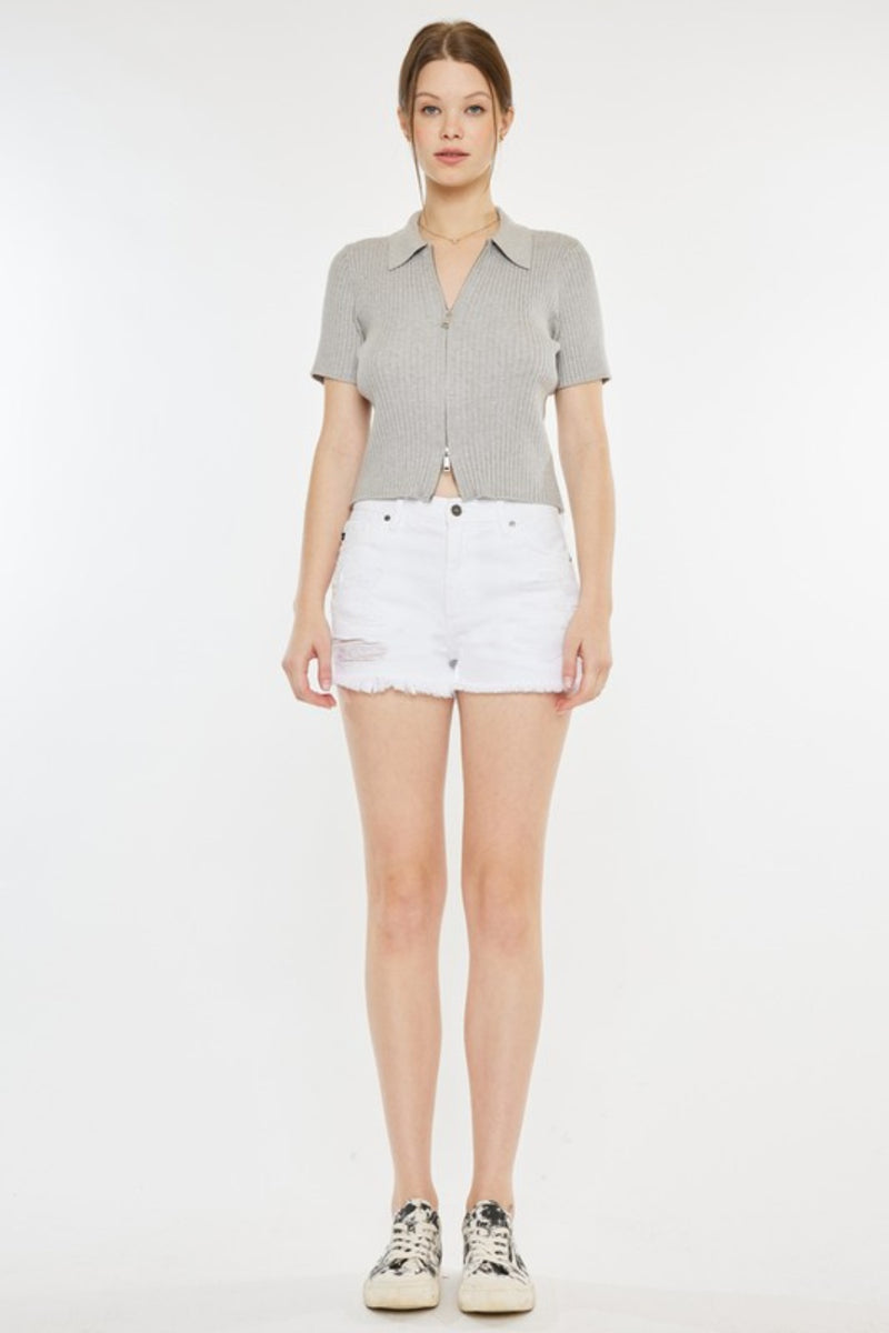 Raw Hem Distressed Denim Shorts are a trendy and casual option for the warmer months. The raw hem adds a touch of ruggedness and edge to the shorts. The distressed detailing gives them a worn-in, vintage look. These shorts are perfect for a relaxed, laid-back style. Pair them with a graphic tee and sneakers for a cool and effortless outfit. Overall, Raw Hem Distressed Denim Shorts are a must-have for those who love a casual and relaxed vibe in their wardrobe.