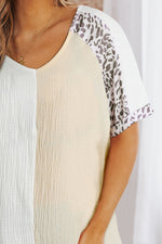 Leopard Color Block V-Neck Top