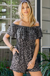 Leopard Off-Shoulder Romper with Pockets