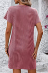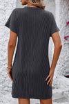 Ribbed Striped Short Sleeve Mini Tee Dress