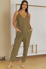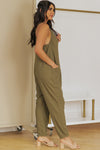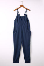 Spaghetti Strap Deep V Jumpsuit with Pockets