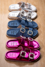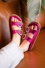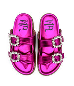 Stellar Rhinestone Buckle Slides in Fuschia