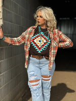 A beautiful design of fall like colors in another amazing aztec design! The tee pairs well with our new Pumpkin Plaid Flannel so you need to get both!!