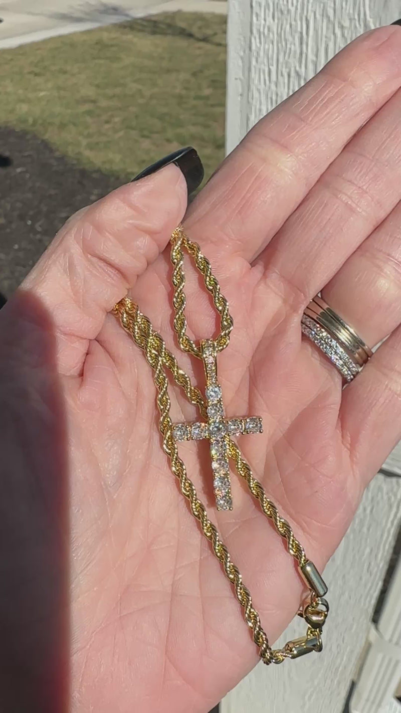 Angela Gold Rope Cross Necklace- 22"