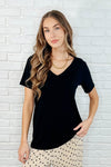 Unapologetically soft and buttery, The Every Outfit Basic V-Neck Top will quickly become a wardrobe staple. With a flattering banded neckline and a timeless ruby hue, The Every Outfit Basic is perfect for dressing up or down. Get ready for endless comfort and style!