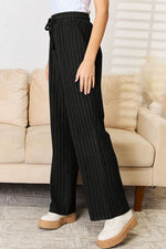 Basic Bae Full Size Ribbed Drawstring Hood Top and Straight Pants Set