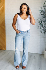 Judy Blue Caroline Mid Rise Control Top Distressed Flare Jeans