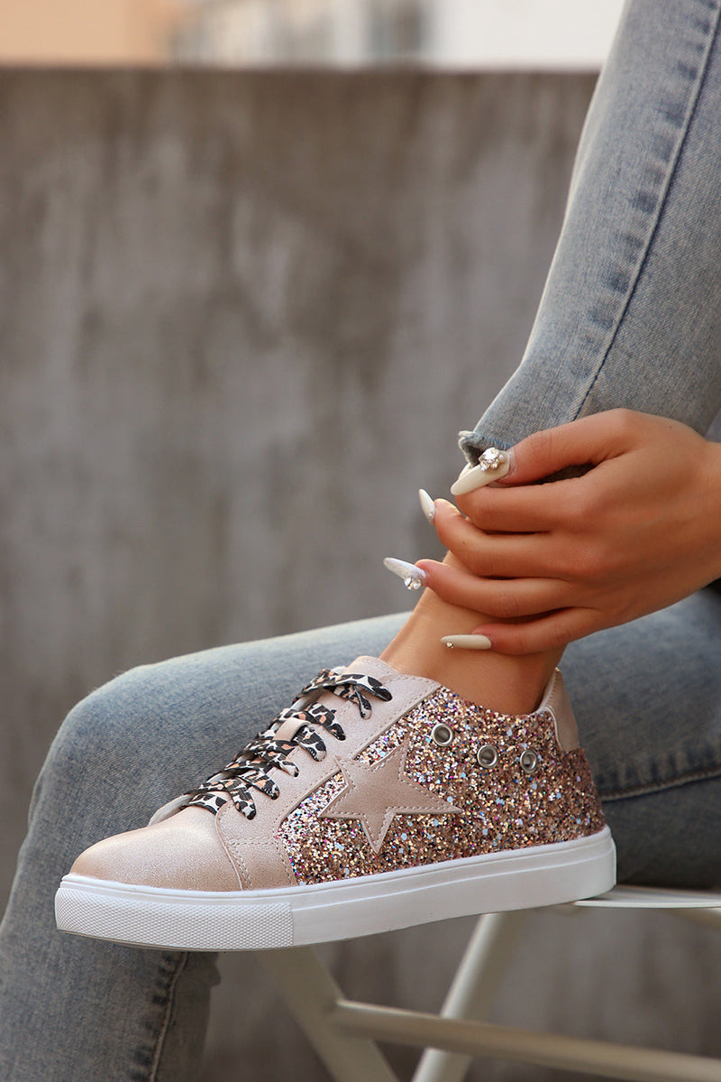 Gold Glitter Leopard Lace Sneakers TLB BRANDS