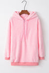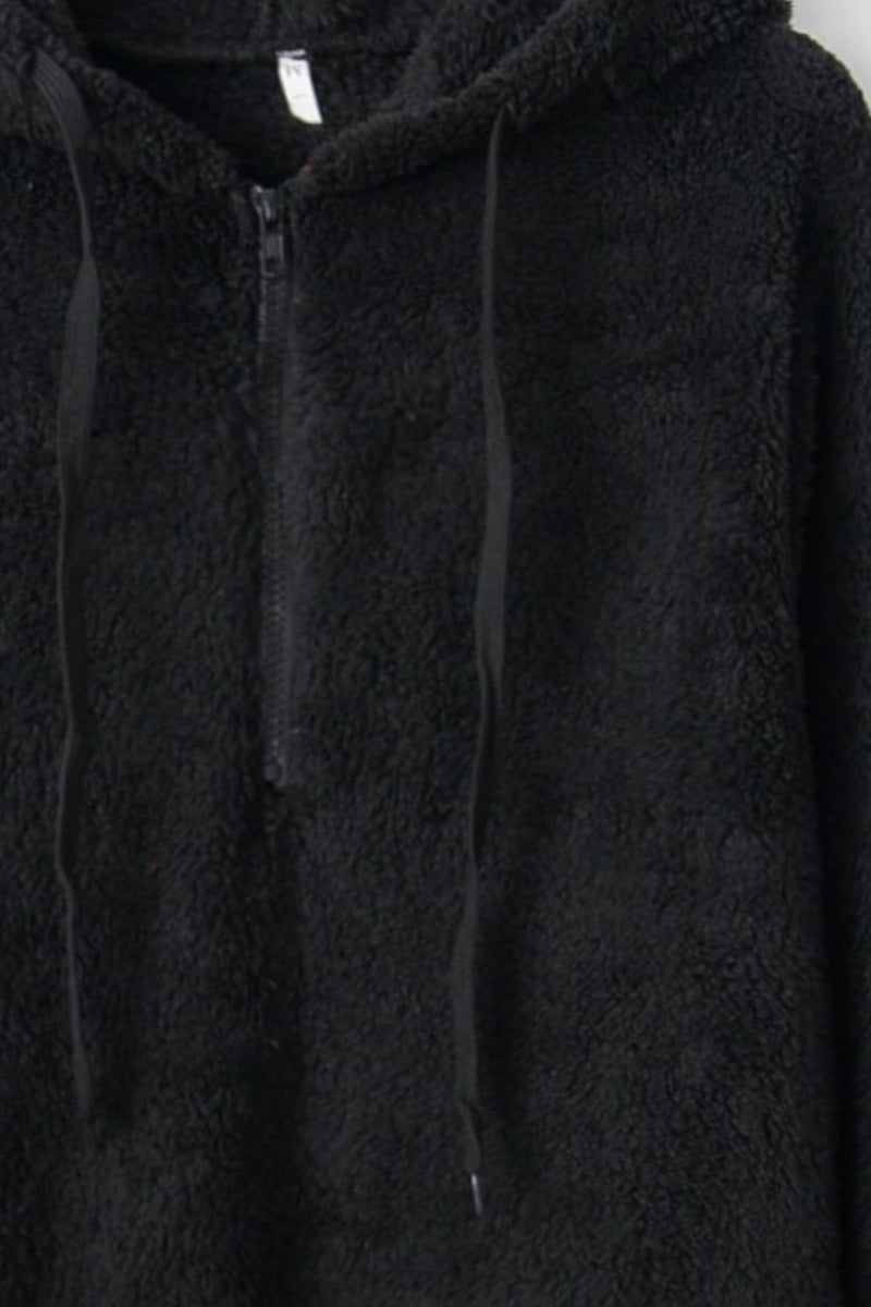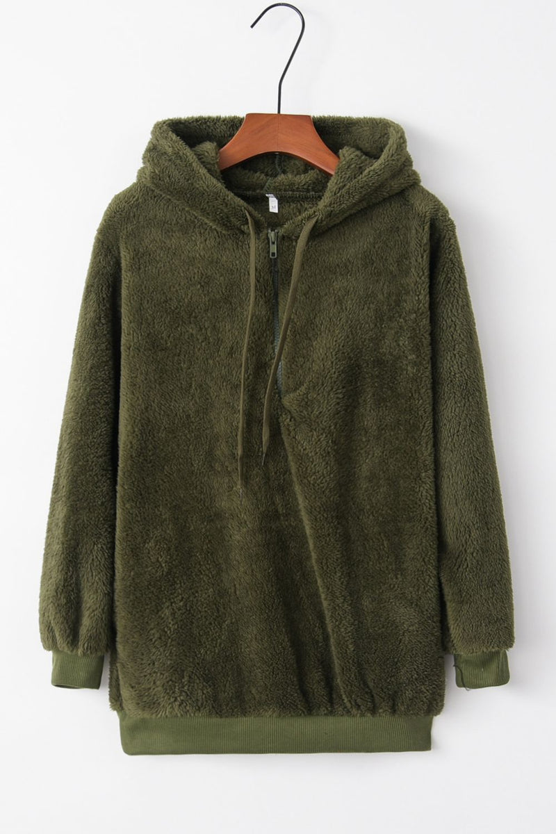 Full Size Quarter-Zip Drawstring Teddy Hoodie