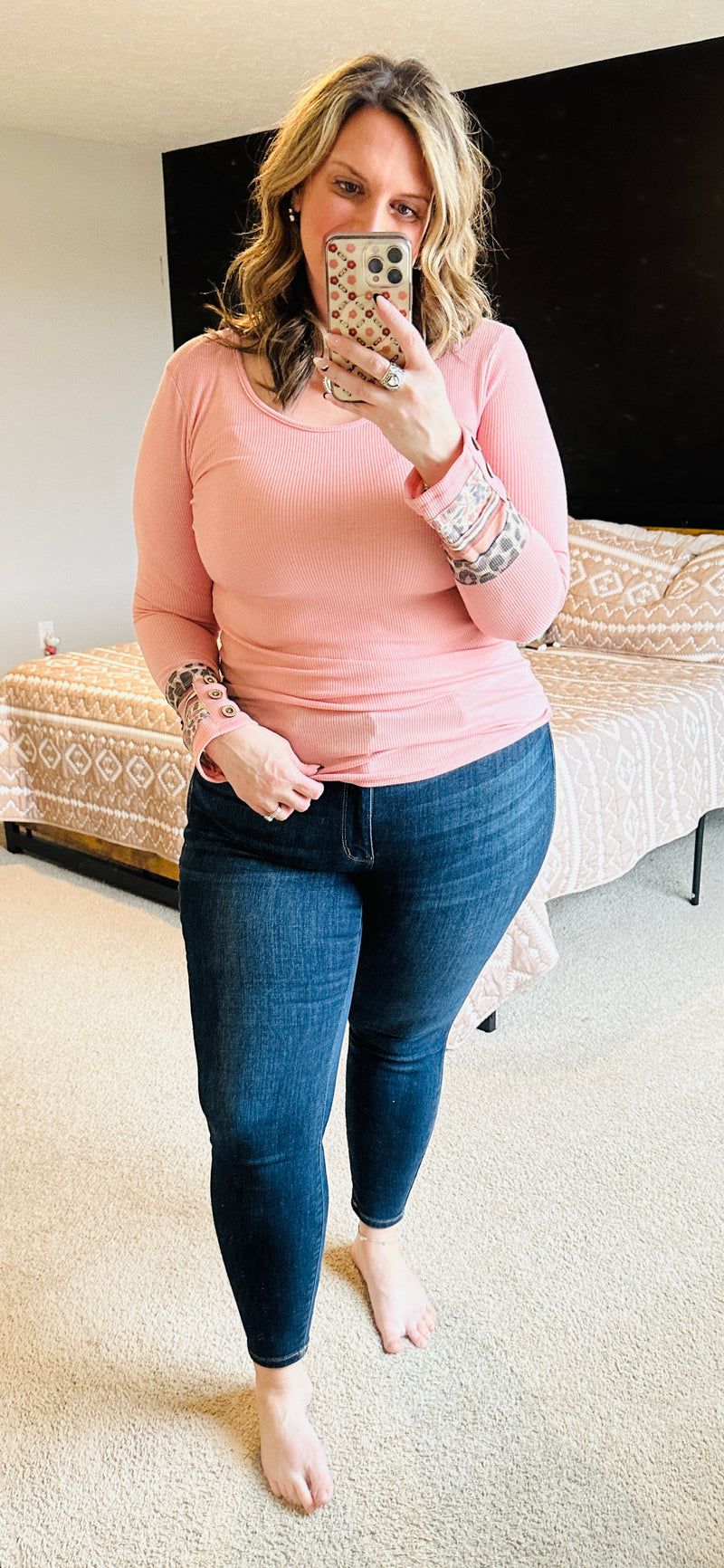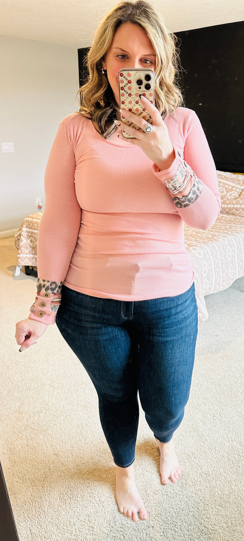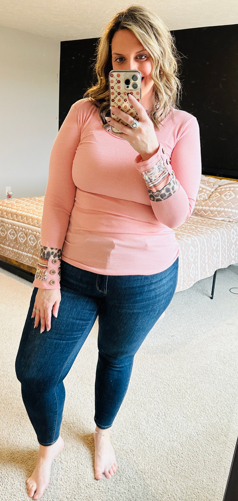 The Madison Knit Leopard Cuff Top is a must-have for any wardrobe. Made from premium, USA-manufactured fabric, this soft knit top features a stylish leopard cuff detail and provides a comfortable and flattering fit. Designed with great stretch and true to size, it's perfect for any occasion.