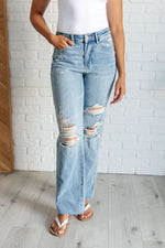 Judy Blue Ramona High Rise Rigid Magic Destroyed Straight Jeans