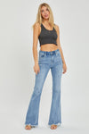 Risen Full Size High Rise Frayed Hem Flare Jeans
