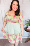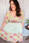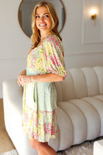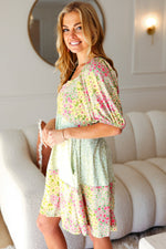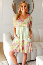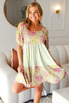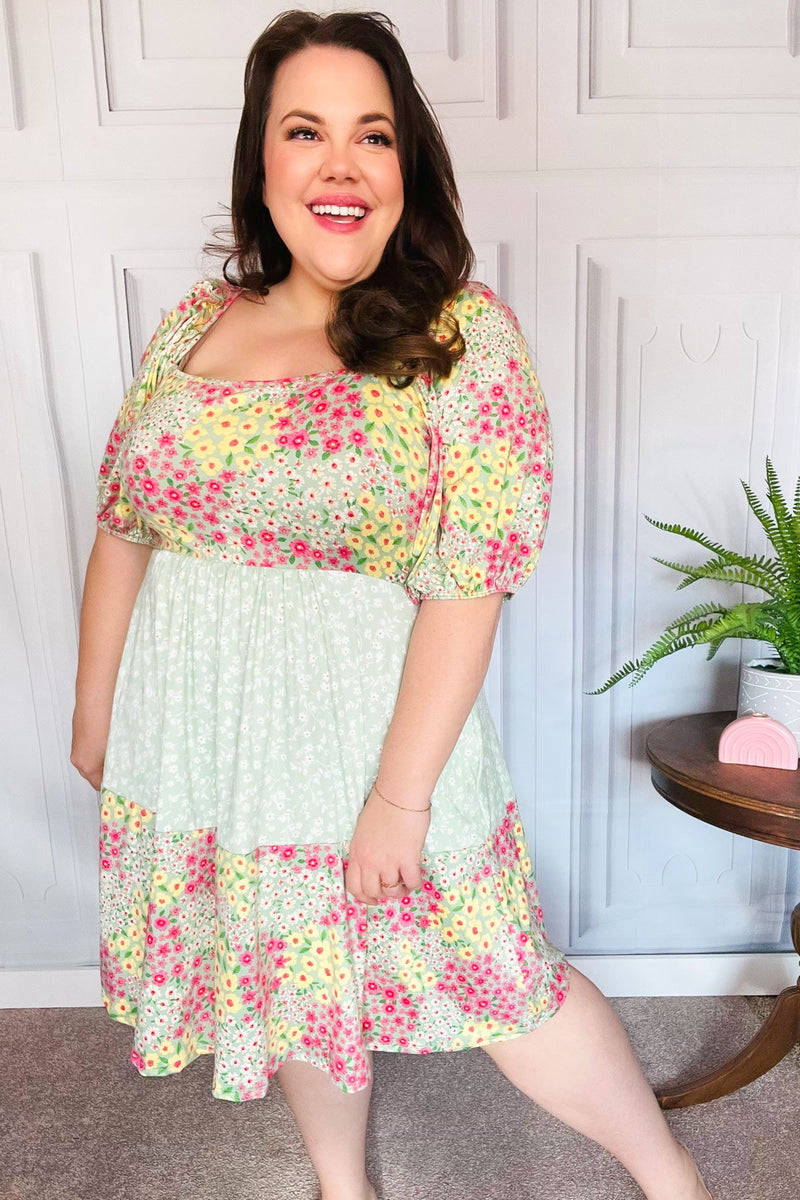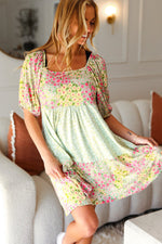 Happy Trails Sage Floral Color Block Square Neck Dress