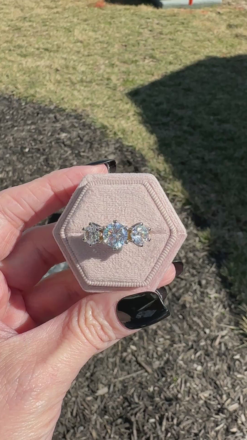 The Sienna Luxe Trilogy Ring blends timeless elegance with a modern, refined design, making it a standout addition to any jewelry collection. Featuring three brilliant round-cut stones set in a graceful silhouette, this ring symbolizes past, present, and future while offering exceptional sparkle from every angle. The sophisticated two-tone finish makes it effortless to style with both gold and silver pieces, creating a versatile look you can wear daily or for special occasions. Crafted from two-tone plated brass and finished with high-quality cubic zirconia stones, this ring delivers a fine-jewelry inspired appearance while remaining lightweight and comfortable for all-day wear. Whether styled alone as a statement or layered into your favorite stack, the Sienna Luxe Trilogy Ring brings effortless elegance to every outfit.